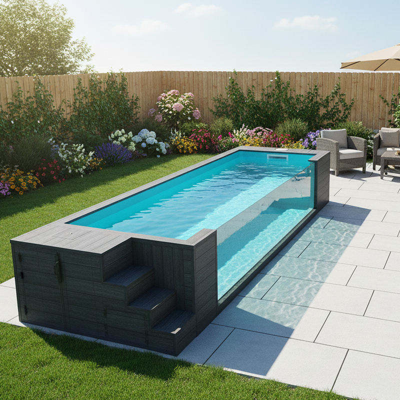 Piscina Container Personalizzata da 20 Piedi in Acrilico Fibra di Vetro e Mosaico di Legno Piscina Spa Vasca Idromassaggio per Esterni Giardino di Lusso Fuori Terra