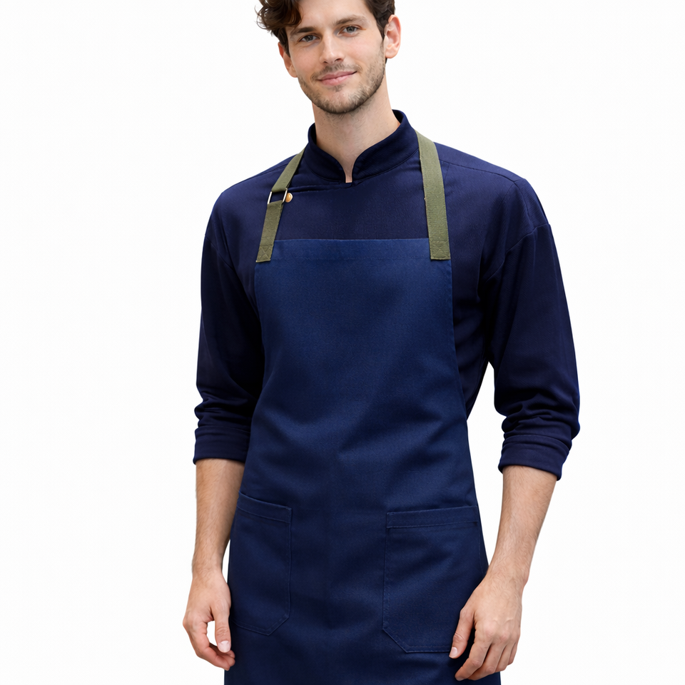 Grembiule da Chef Personalizzato in Cotone Twill 300gsm con Tasche per Uniformi da Lavoro Ristorante, Logo OEM, Divisa da Cucina