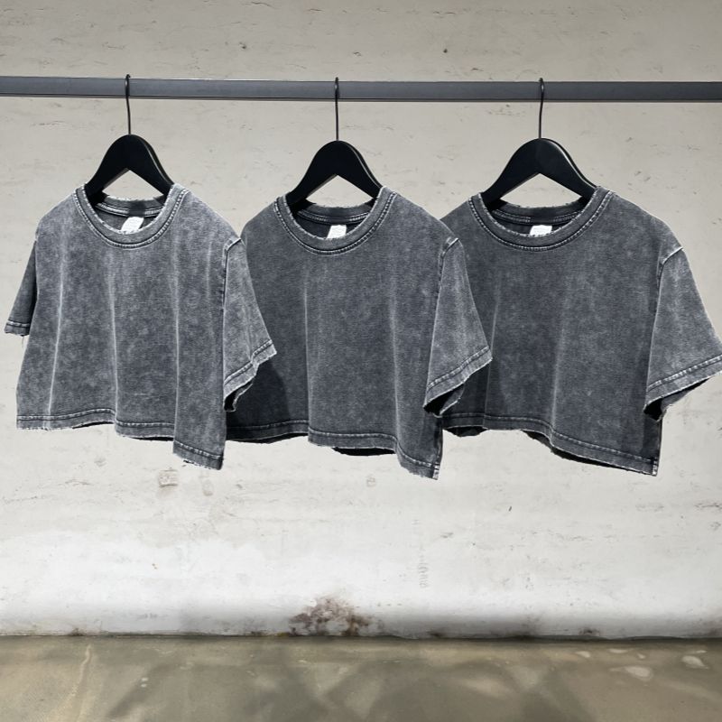 Custom 305g Vintage Letters Embroidery Crop Top Tee Shirt for Women Distressed Black O-Neck Acid Washed Size 2XL Office Lady