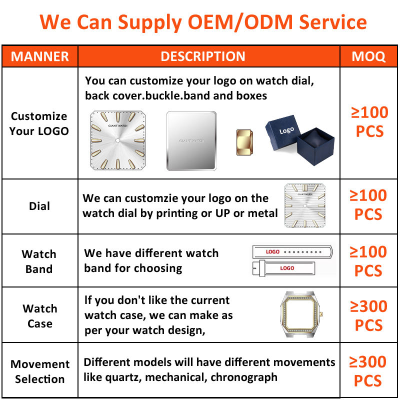 Orologio da Uomo Quadrato al Quarzo da 36mm Personalizzato con Movimento Giapponese, Orologi in Acciaio Inossidabile di Alta Qualità a Prezzo Conveniente