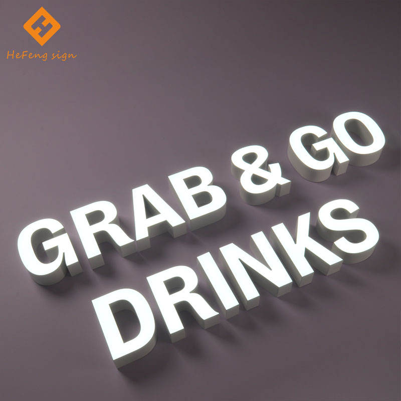 Insegna LED 3D in Acrilico Personalizzata - Segnaletica Illuminata Direttamente dalla Fabbrica per Negozi di Bevande Grab & Go