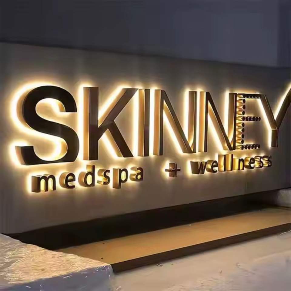 Insegna da Parete Personalizzata in Metallo per Ufficio con Design 3D e Logo, Lettere Dorate in Acciaio Inox, Segnaletica Elettronica per Spazi di Lavoro