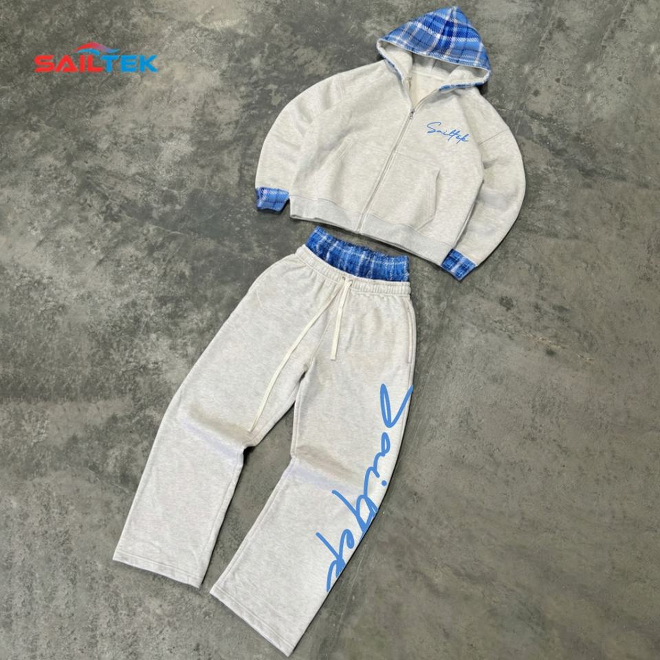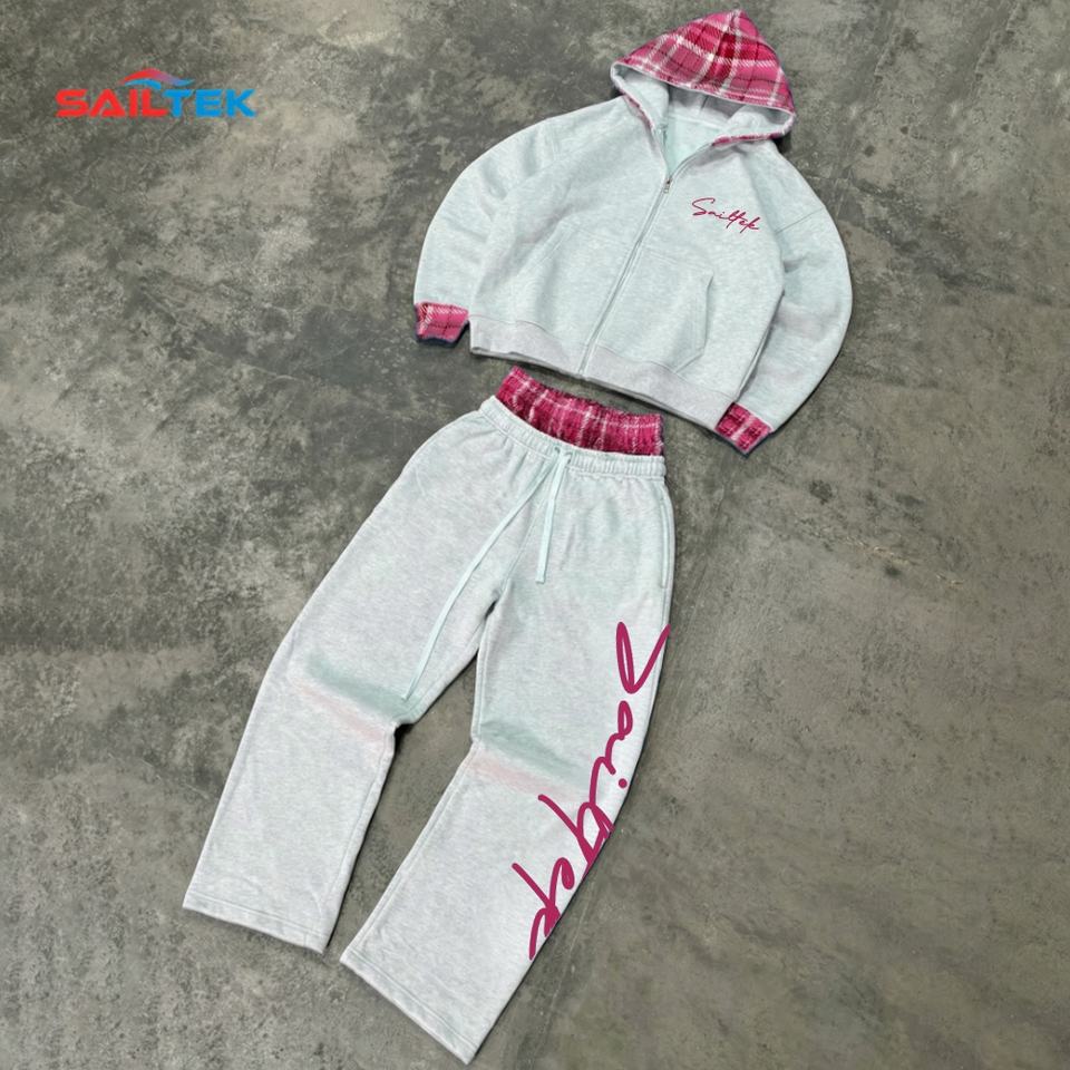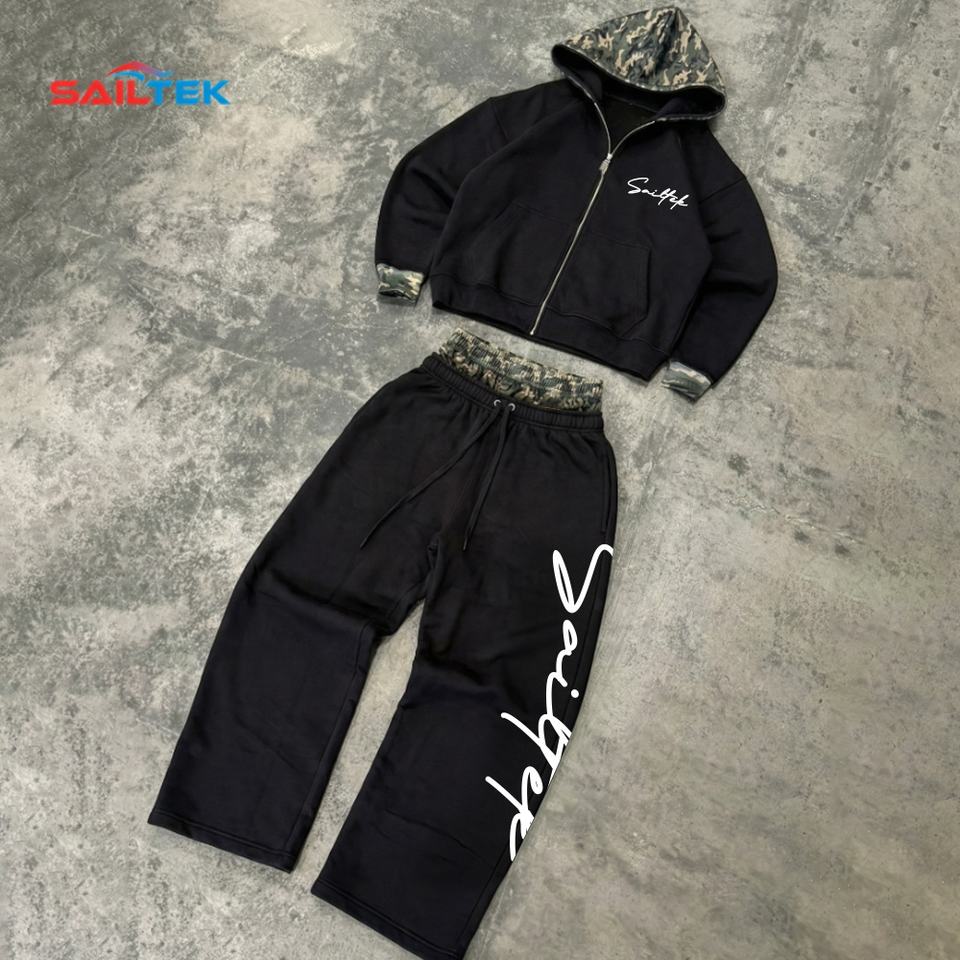 Tute Mimetiche Personalizzate con Ricamo 3D, Felpa con Cappuccio di Alta Qualità con Zip e Pantaloni a Gamba Larga con Doppia Vita, Streetwear Y2K