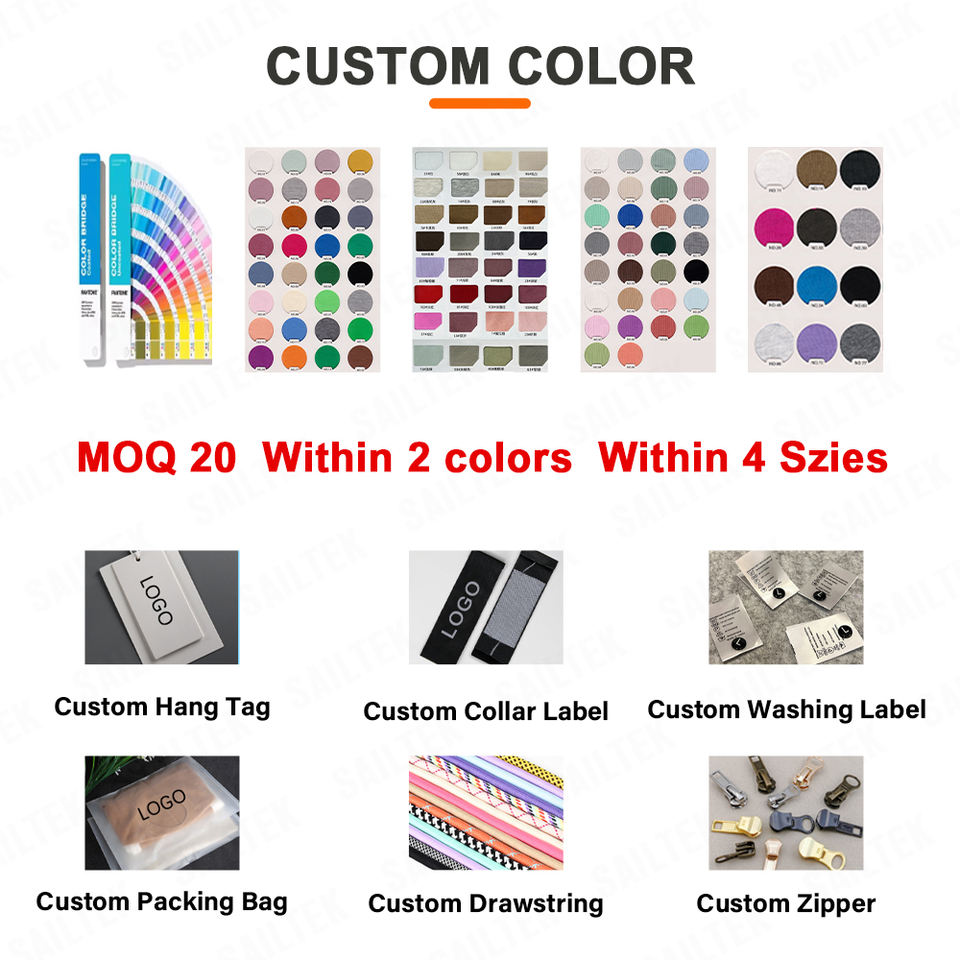 Metodi di stampa:Stampa del soffio, Goffrato, Stampa a trasferimento termico, Stampa digitale, Serigrafia, Scarico di stampa, Sublimazione di trasferimento di stampa, Stampa in silicone, Stampa riflettente