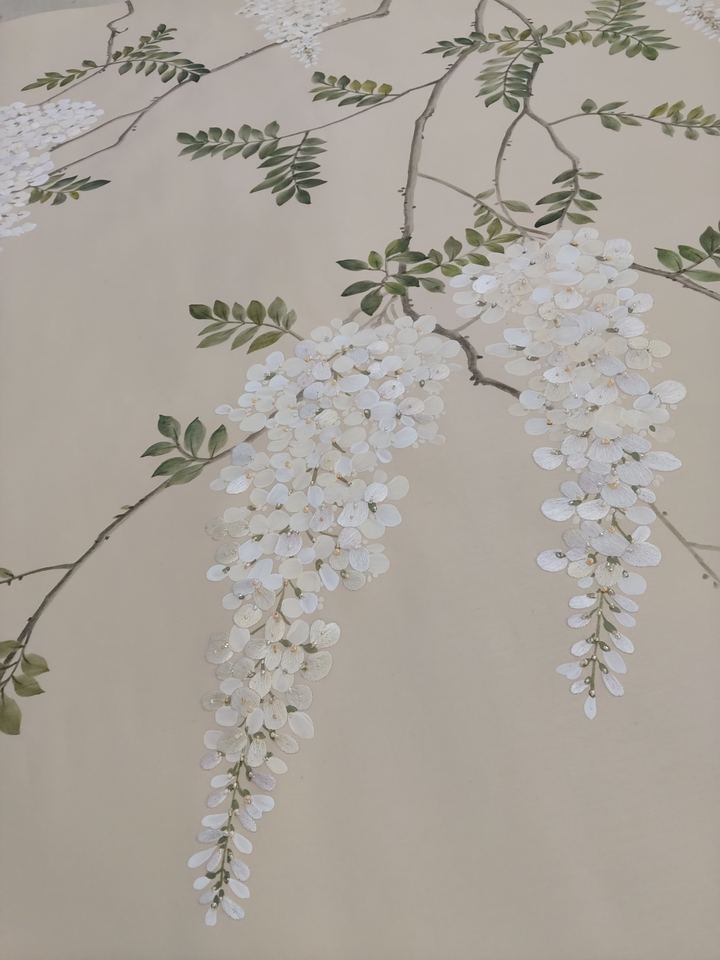 Nome del prodotto:Carta da parati personalizzata 3D con fiori e uccelli, ricamo di lusso con perline