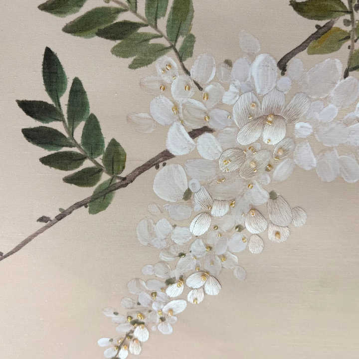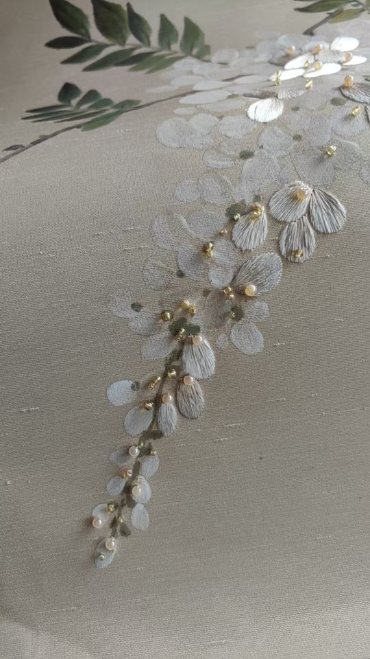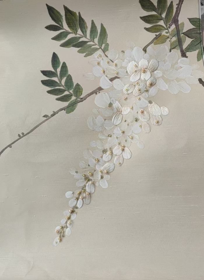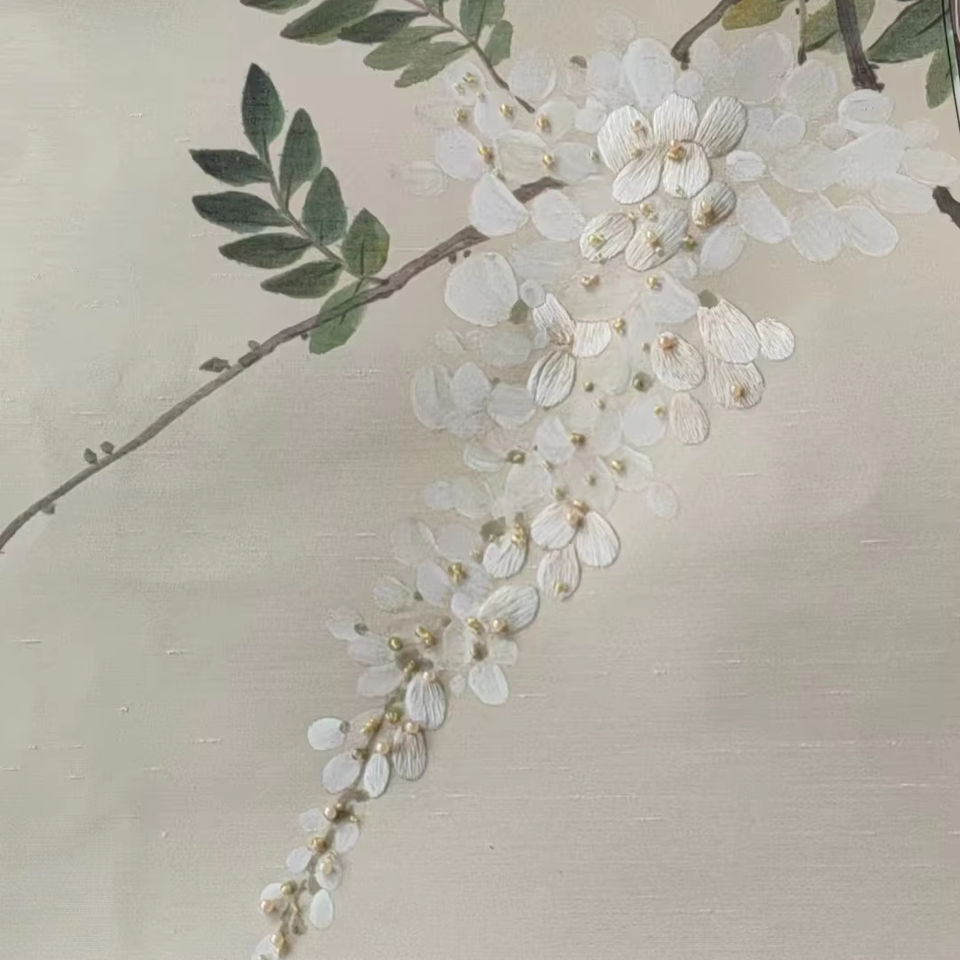 Carta da Parati Murale 3D Personalizzata con Fiori e Uccelli, Lussuosa Carta da Parati Testurizzata Dipinta a Mano con Ricami di Perline per Camera da Letto, Hotel, Soggiorno