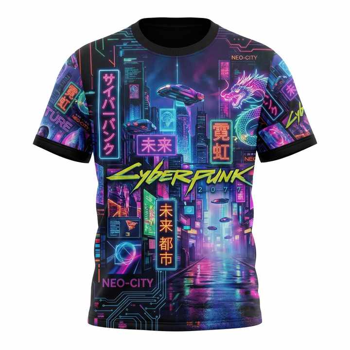 T-shirt Personalizzata con Stampa 3D in Sublimazione, 100% Cotone Lavorato a Maglia, Traspirante e ad Asciugatura Rapida, Estetica Cyberpunk Vibrante, Streetwear Neo-Tokyo