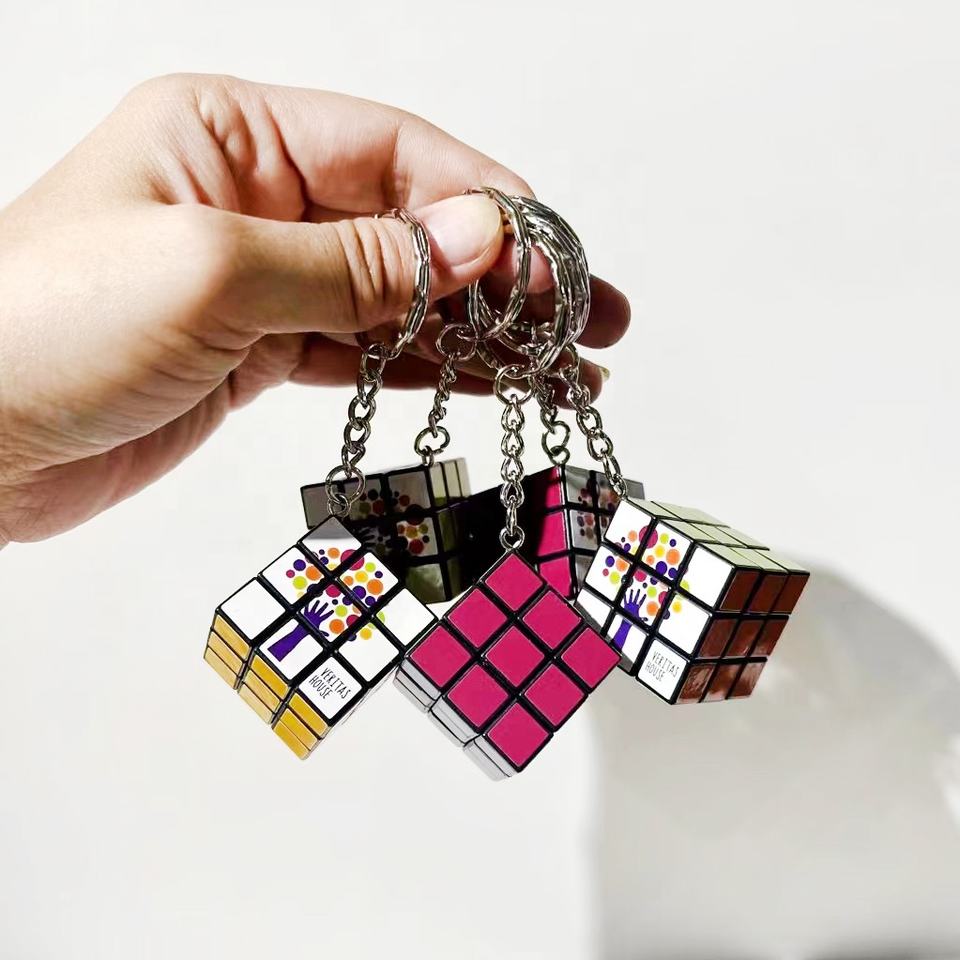 Custom 3cm 3.5cm UV 3x3 velocità cubo magico 3x3x3 qualità portachiavi didattico 3d pubblicità 3d Mini Puzzle cubo giocattolo