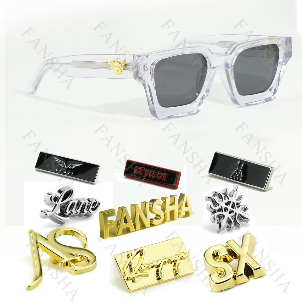 Logo 3D Personalizzato in Metallo Dorato e Argentato con Diamanti per Aste di Occhiali in Acetato PC, Logo 3D in Metallo per Occhiali da Sole