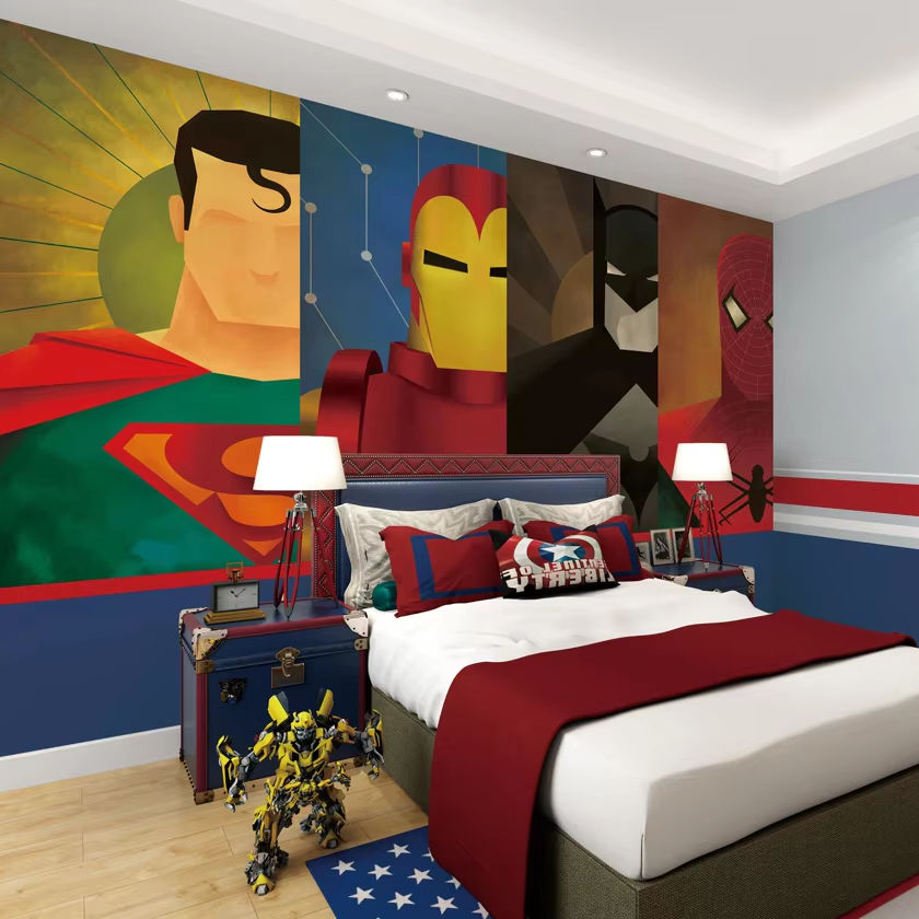 Sungpu Carta da parati murale 3D stampata, supereroi per cameretta, inchiostro latex acquoso – Cert. CE/SGS/UL – 1 rotolo/cartone