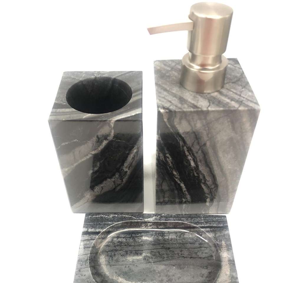 Set di Accessori per Bagno in Pietra Naturale Personalizzato 3 Pezzi Moderno e Facile da Usare Portasapone e Set Bottiglie per Doccia per Casa o Hotel