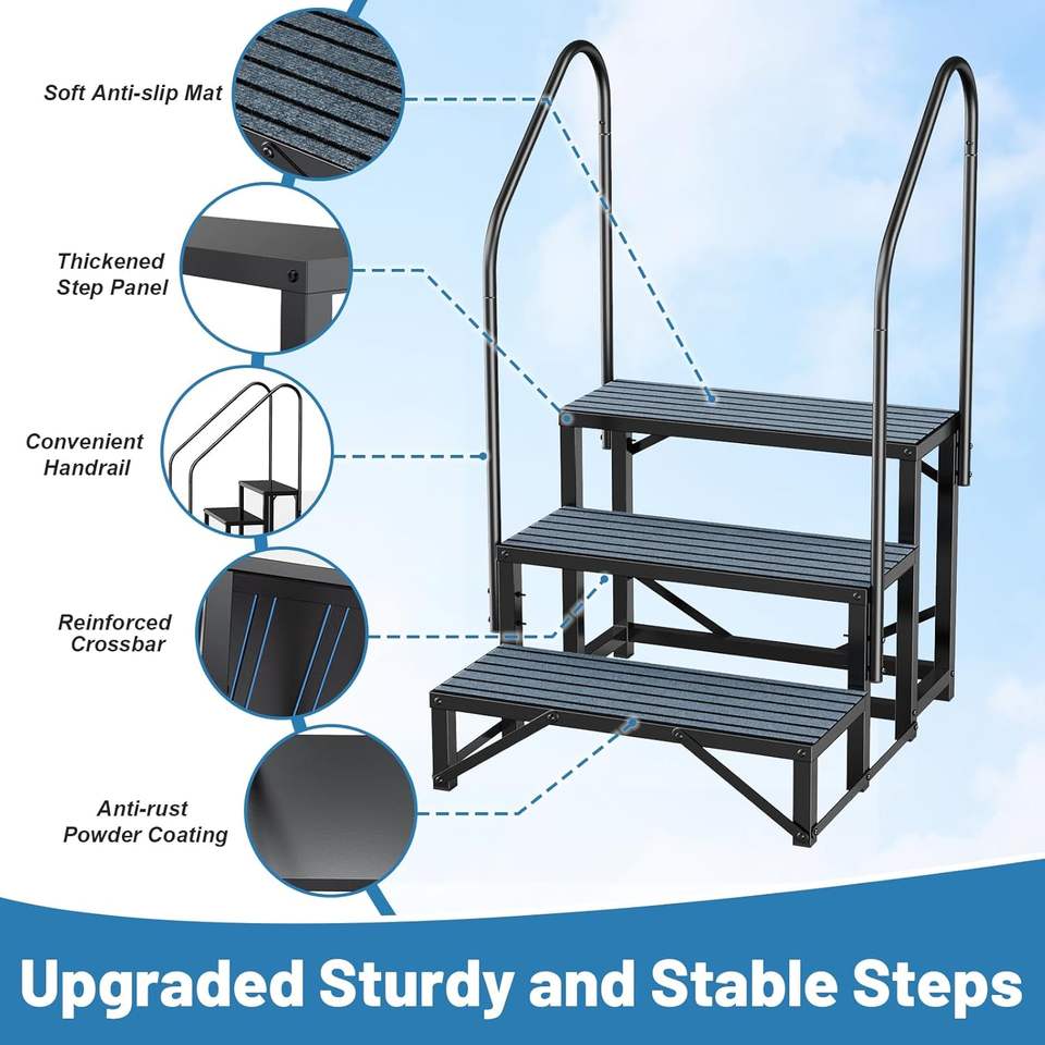 Scaletta per camper a 4 gradini personalizzata con 2 corrimano, in alluminio resistente, per roulotte, camper, van, rimorchi da viaggio, piscine, verande e balconi, antiruggine