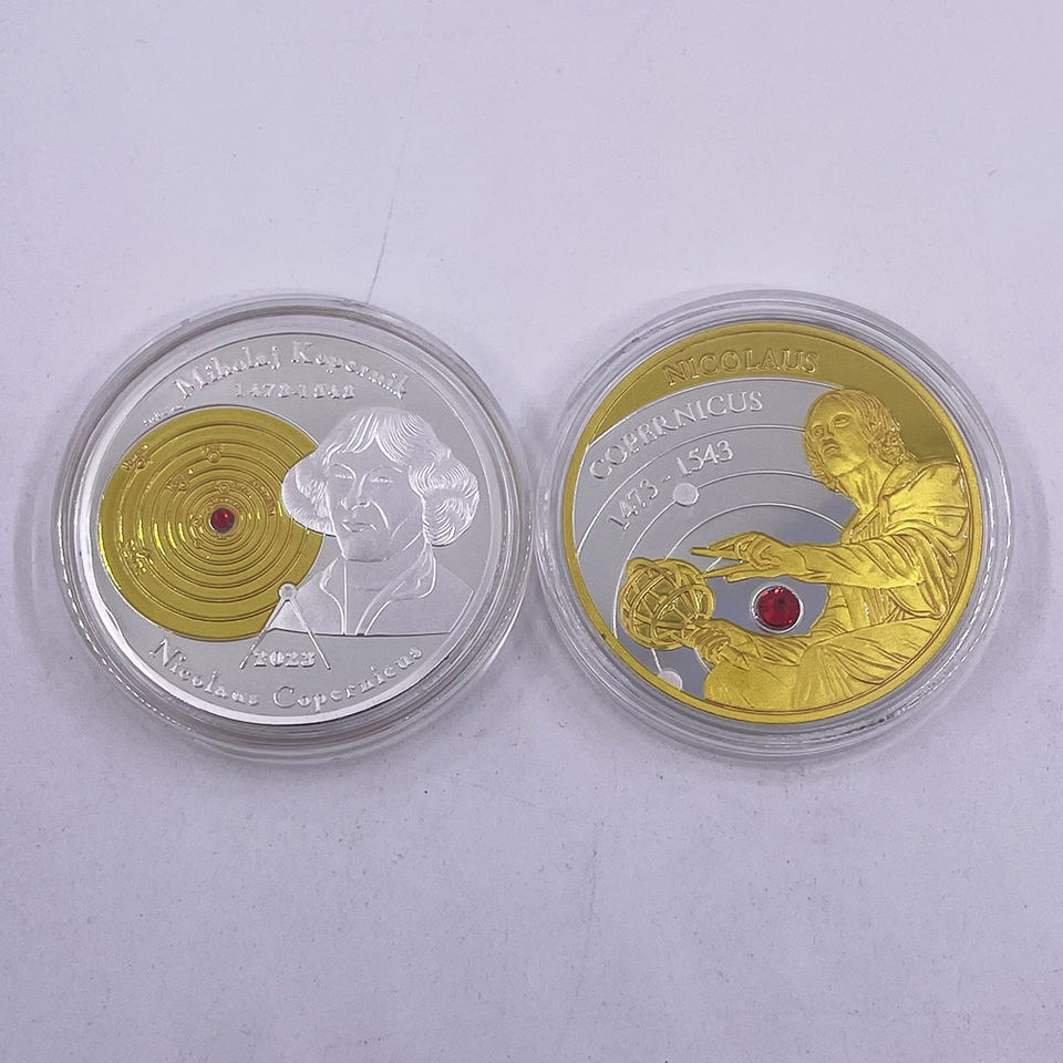 Moneta Commemorativa Personalizzata da 40mm di Copernico Placcata in Oro e Argento per Collezione di Artigianato Metallico