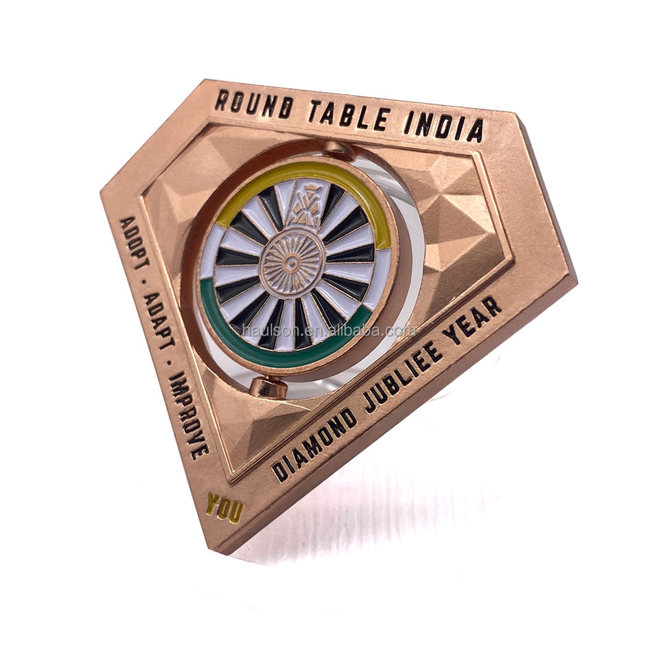 Monete commemorative con rotazione in smalto morbido a forma di diamante con moneta girevole placcata bicolore personalizzata da 50mm