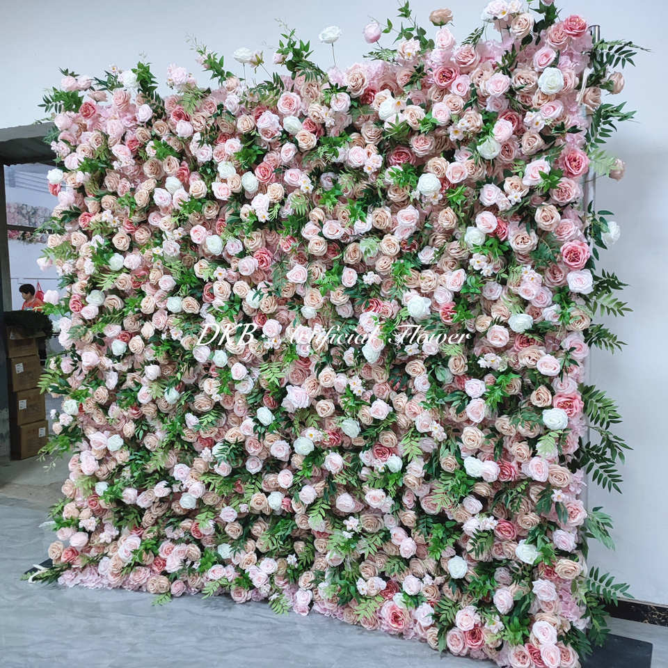 Custom 8*8 ft Flower Wall Roll up Artificial Silk pink Rose Greenery Hanging Flowers Wall Background for Wedding Party