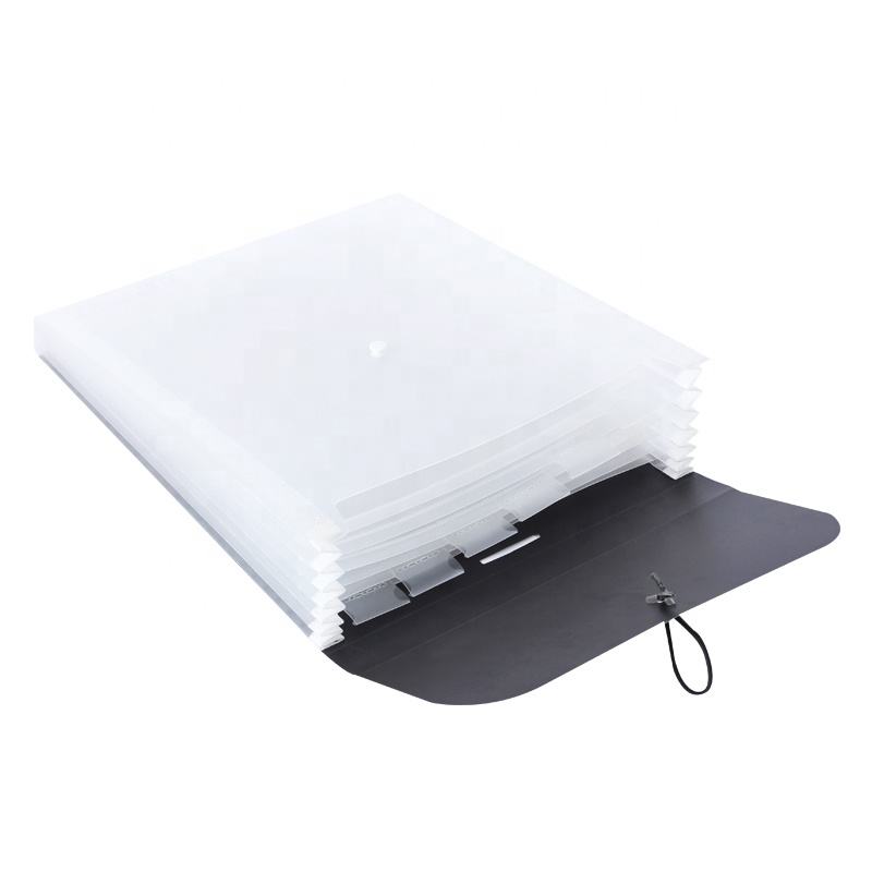 Custom A3/A4 Pocket Expanding Clear Flipped Organ Clip Round Cover Rope Buckle Office Supplies PP Package
