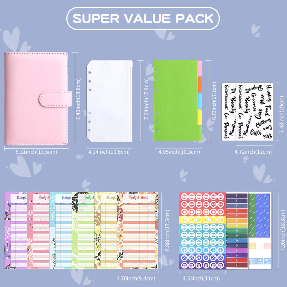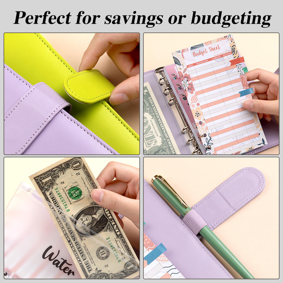 Fornitore di Taccuino Personalizzato A6 in Ecopelle ad Anelli Raccoglitore Agenda Planner di Budget con Fibbia per Archiviazione Contanti Libro Contabile Regali per Bambini