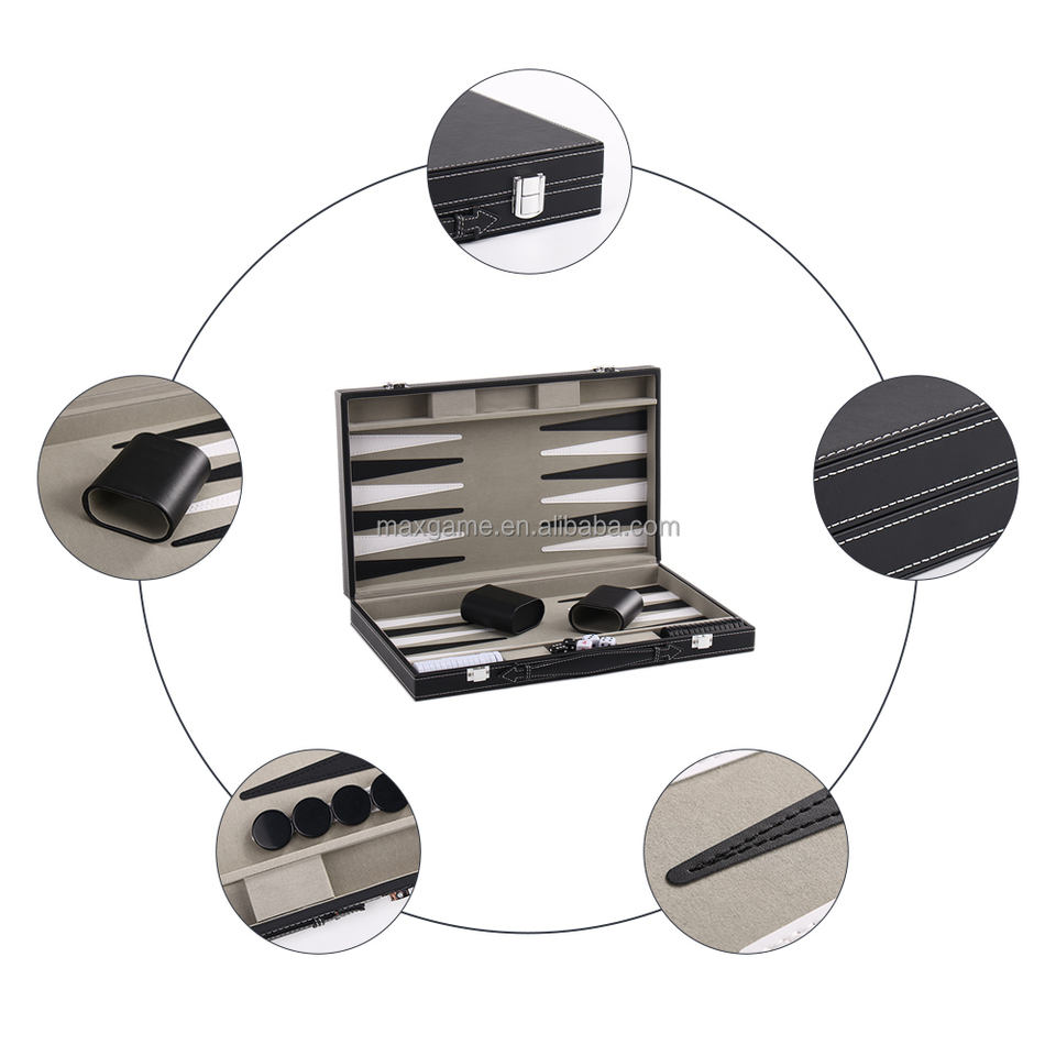 Set da viaggio personalizzato per adulti Backgammon portatile con custodia in pelle e chip per giochi di scacchi