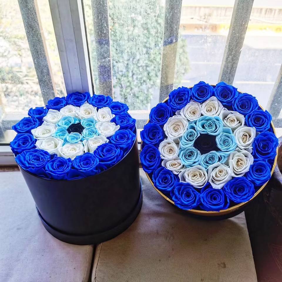 Su misura tutti i fiori colorati in velluto scatola rotonda all'ingrosso alla rinfusa per sempre rose malocchio per i regali di San Valentino