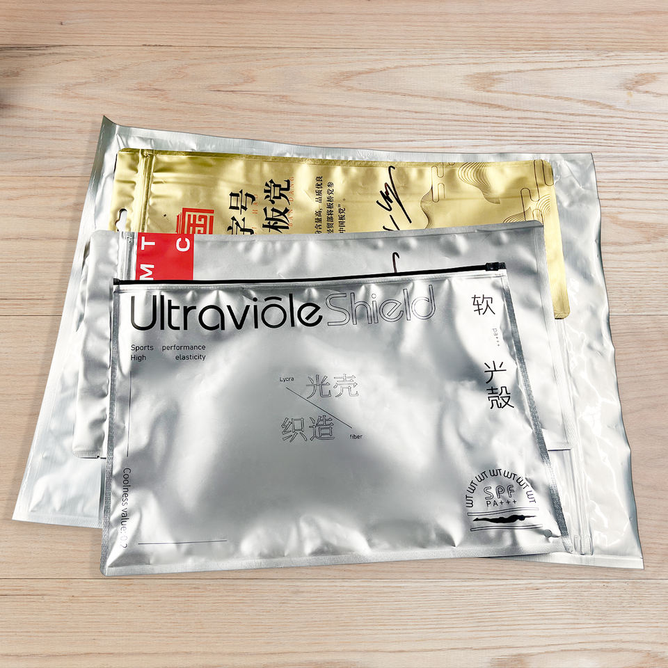 Sacchetti di indumento con cerniera in alluminio personalizzati che confezionano indumenti in plastica lucida sacchetti con chiusura a Zip in metallo argento