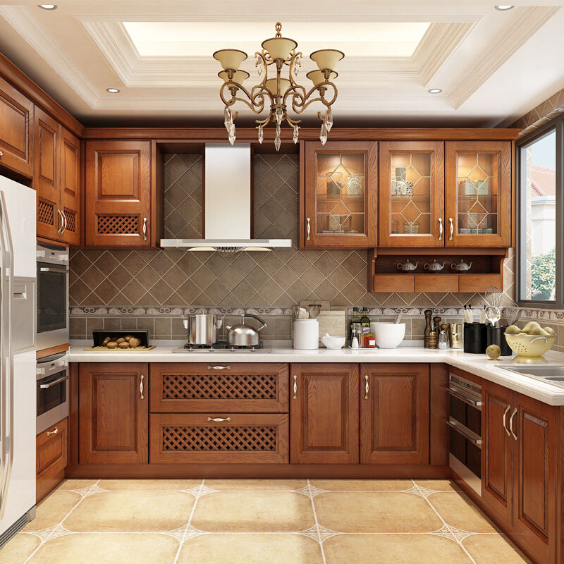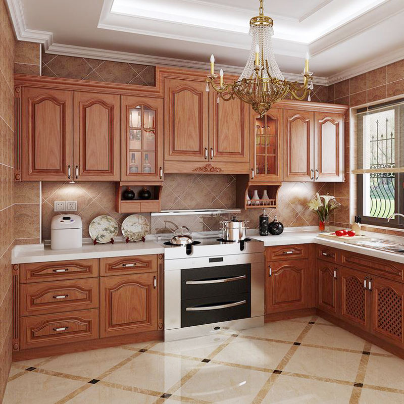 Nome del prodotto:Mobile da cucina in stile reale antico personalizzato in compensato marrone per la tua casa