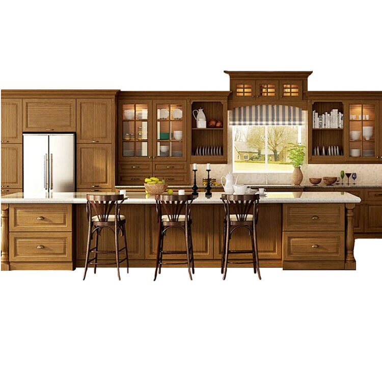 Mobile da Cucina Personalizzato in Stile Antico Reale in Compensato Marrone per la Tua Casa