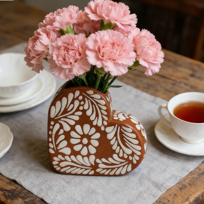 Vaso da Tavolo Piccolo in Ceramica Marrone a Forma di Cuore