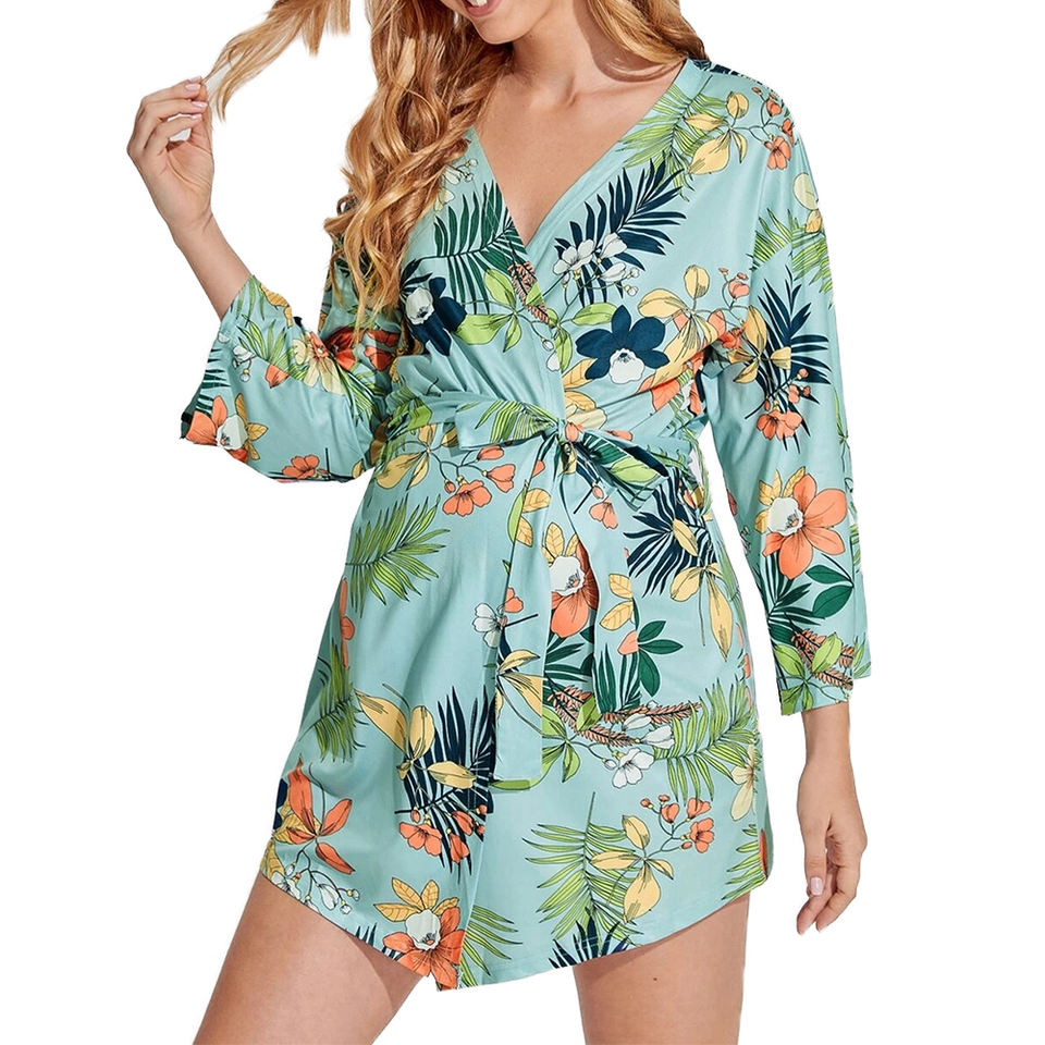 Custom Autumn Women Ladies Pregnant Clothes Floral Maternity Dresses Bamboo Viscose Pajamas Robes
