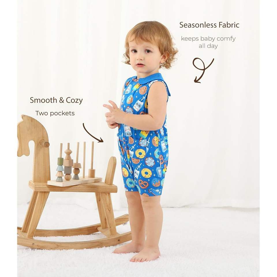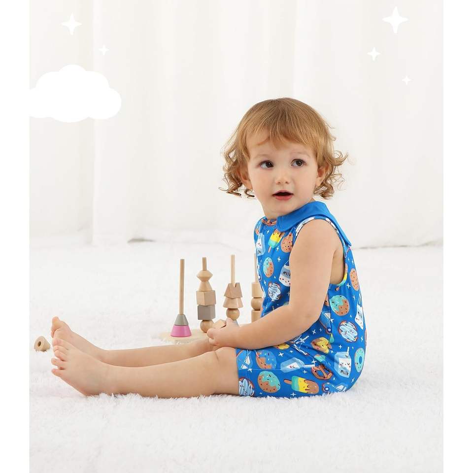 Tutina Estiva Personalizzata per Neonati Maschi, Senza Maniche, con Chiusura a Bottoni, in Viscosa di Bambù, 3-24 Mesi