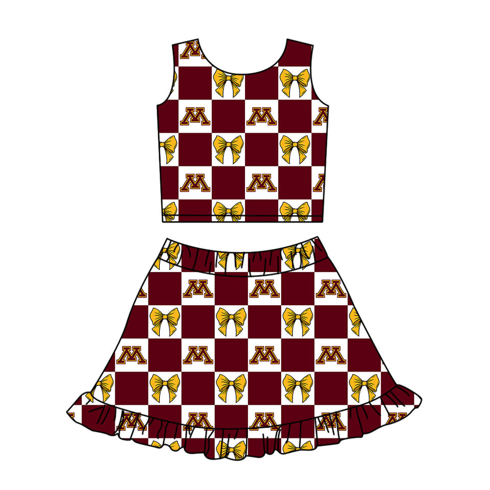 Set Sportivo Personalizzato per Bambine con Fiocco Arancione e Stampa di Lettere, Motivo a Scacchi Rosso e Bianco, Outfit Carino per Piccole