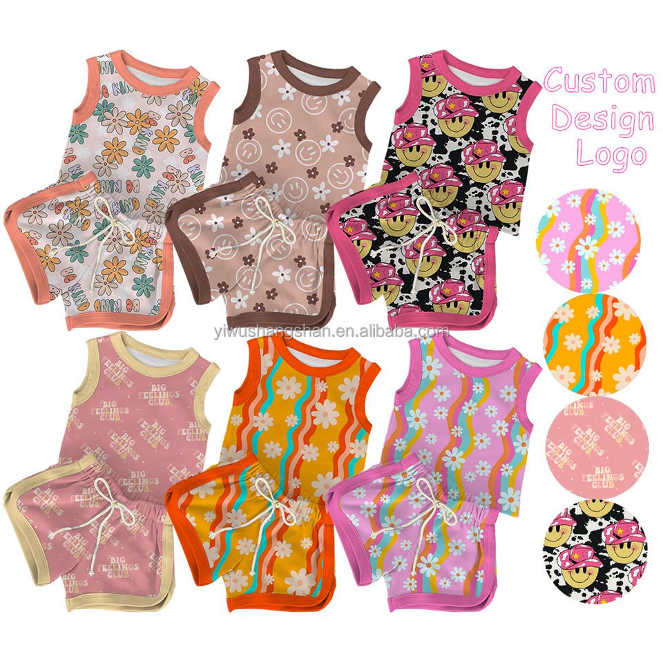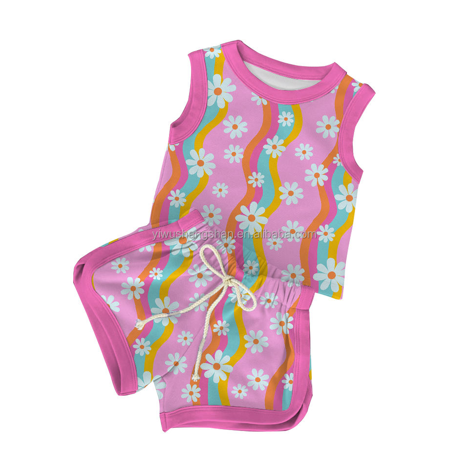 Set di Abbigliamento Estivo Personalizzato per Bambine, Due Pezzi Senza Maniche, Canotta e Pantaloncini con Stampa Floreale e Sorriso