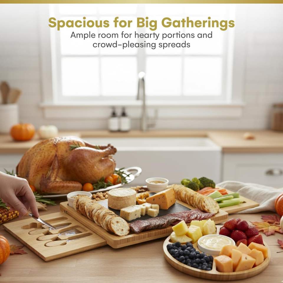 Tagliere per Formaggi in Bambù Personalizzato con Posate, Include Utensili da Servizio in Acciaio Inox, Vassoio per Formaggi e Piatto di Servizio