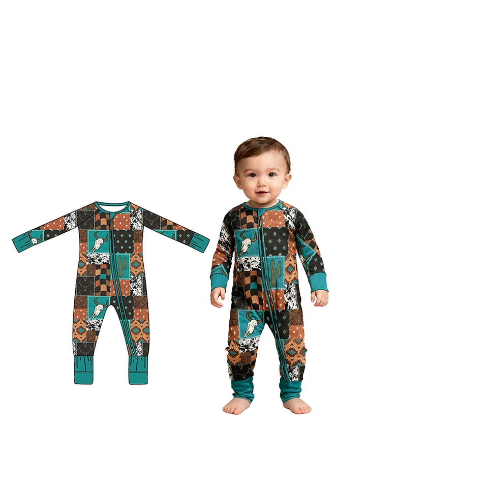 Tutina per Neonato in Bambù Personalizzata, Stile Western, con Cerniera Bidirezionale, Ecologica, 0-3 Mesi, Set di Vestiti per Neonati, Pigiami