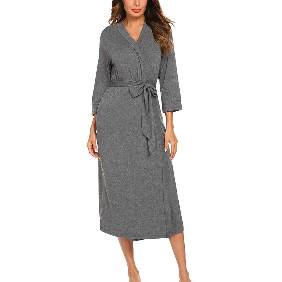 Vestaglia da Notte Personalizzata in Bambù e Spandex per Donna, Pigiama Lungo Tinta Unita, Abbigliamento da Casa, Indumenti da Notte, Camicia da Notte Femminile
