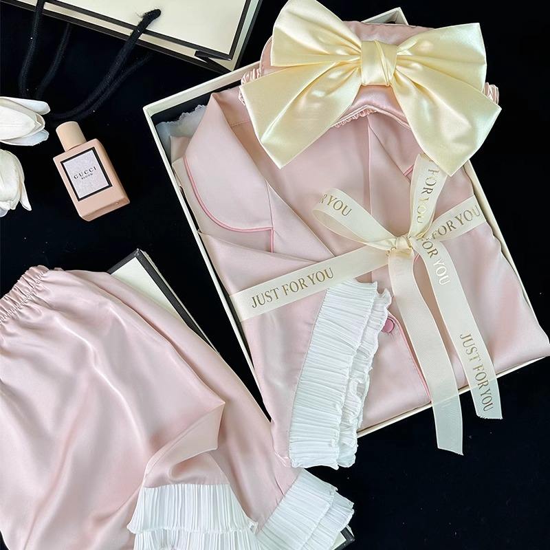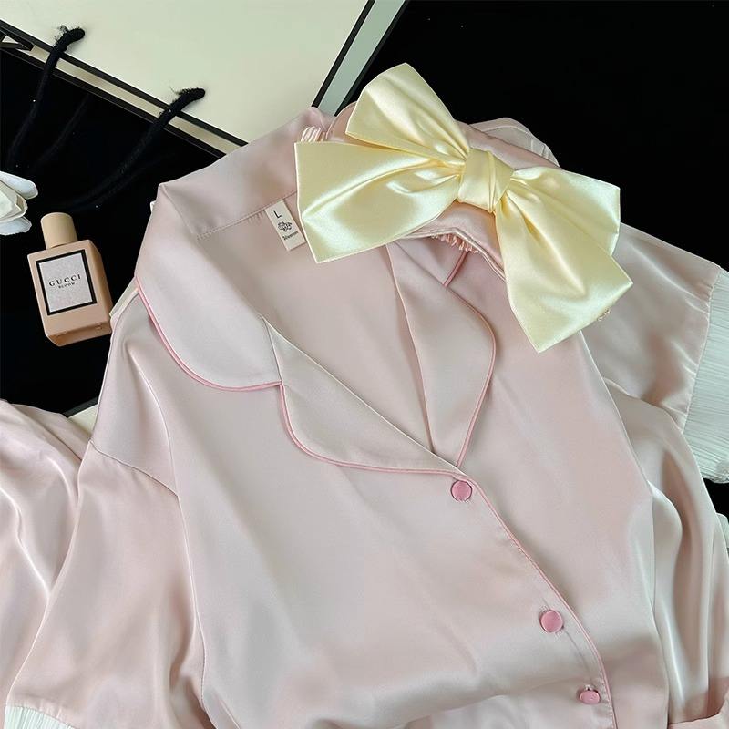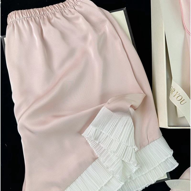 Set di pigiami in raso ricamato regolare di base su misura 2 pezzi pigiami in bianco di seta da donna Set pigiami in raso