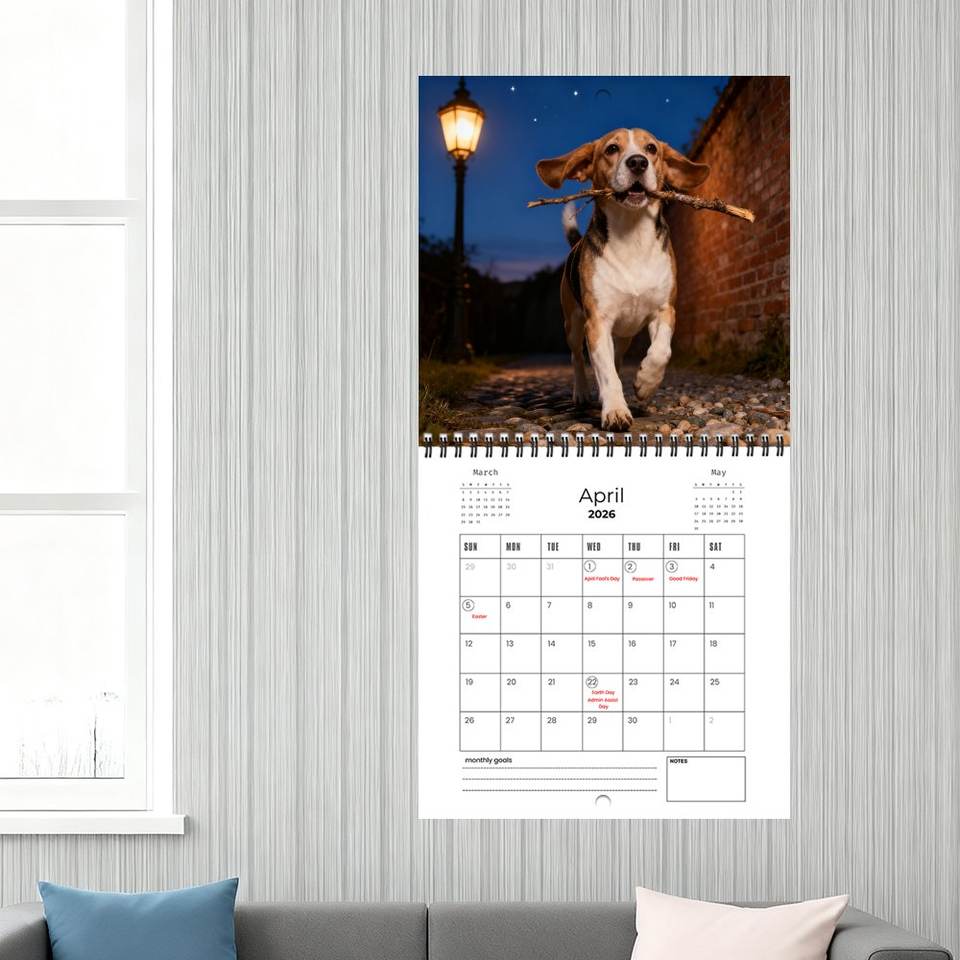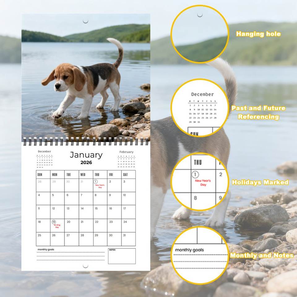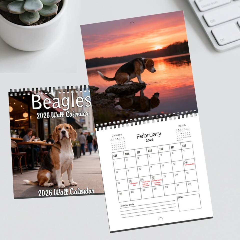 Calendario da Parete a Spirale Personalizzato Beagles 2026, Carta Artistica 300gsm, Grande Calendario Mensile per Casa e Ufficio, Regalo con Orologio