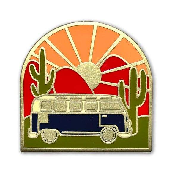 Spilla per animali selvatici con motivo motivo personalizzato con spilla da campeggio con vista in montagna