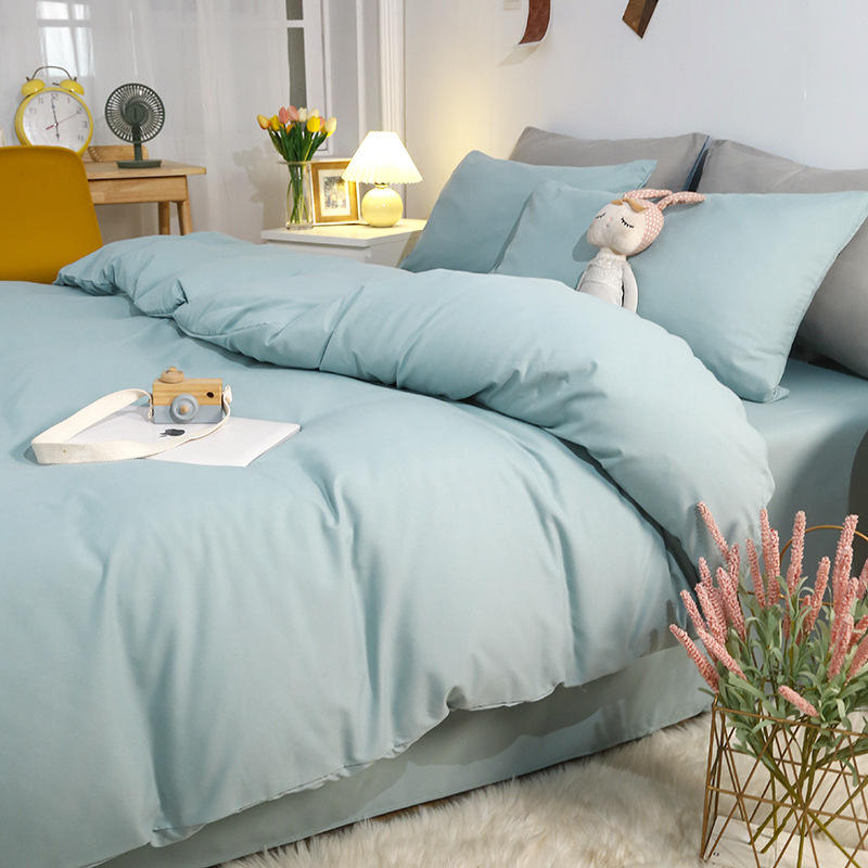 Set di Biancheria da Letto Personalizzato in Quattro Pezzi, Copripiumino in Cotone Lavato, Set di Lenzuola in Tinta Unita in Tre Pezzi