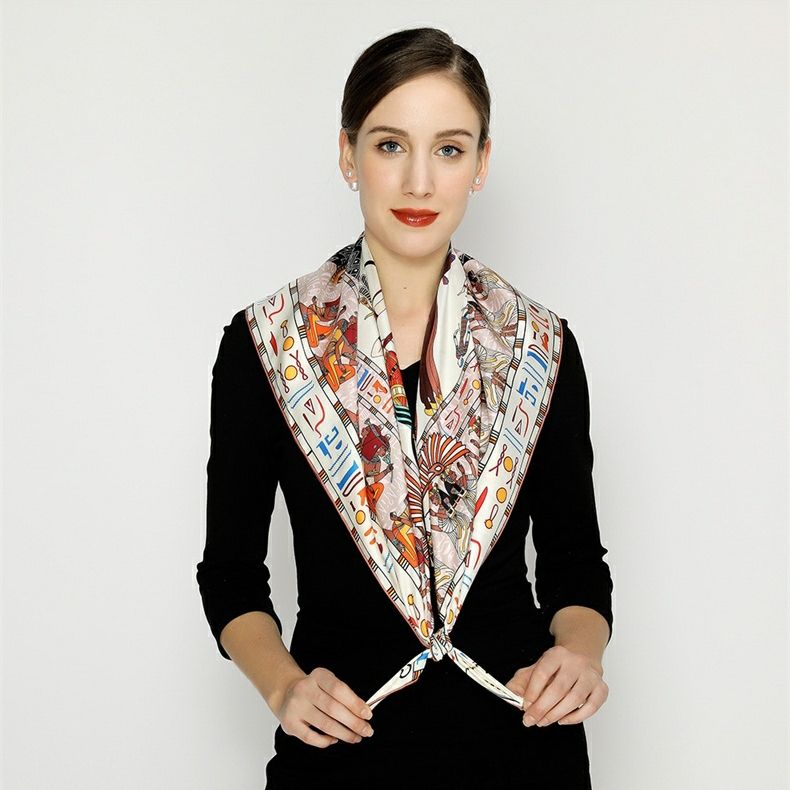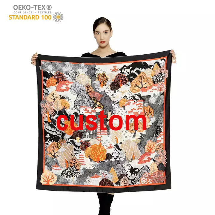 Foulard Quadrato Personalizzato da Donna in Pura Seta Raso con Stampa Digitale 90x90 cm Sciarpa per Capelli da Donna BB