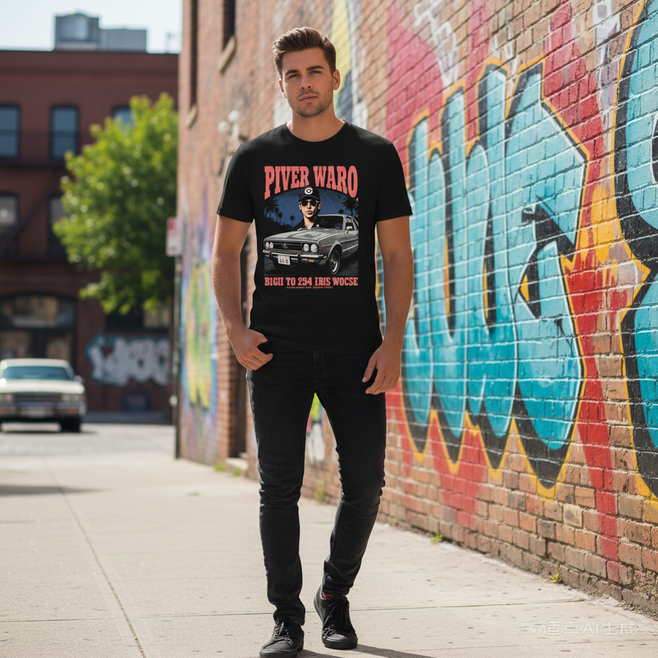 T-Shirt Personalizzata Nera 100% Cotone Organico con Stampa Grafica Motivo Uniforme Lunghezza Corta Serigrafia