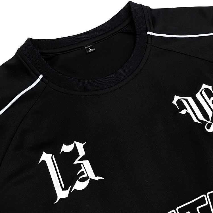Maglie da calcio nere personalizzate con Logo ricamato moda Design retrò Patchwork maglia da calcio