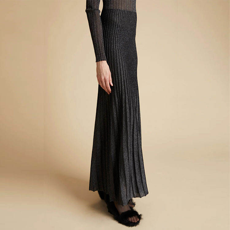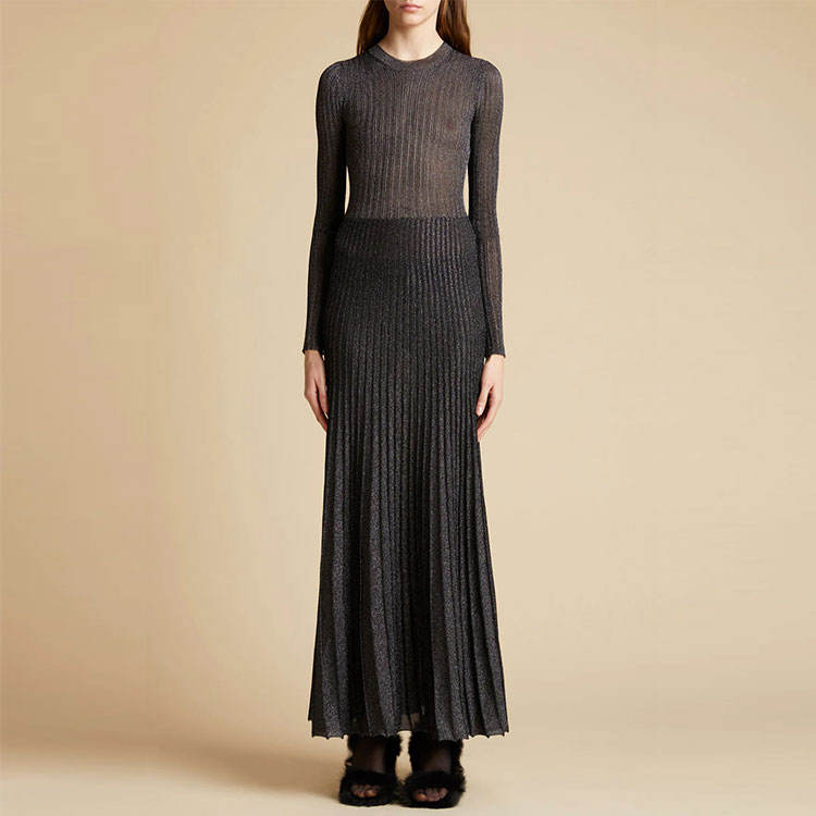 Custom Black Pleated Midi Dress Elegant Casual Plus Size Women's Formal Sweater Knitwear for Winter Knit Dress by Manufacturers
