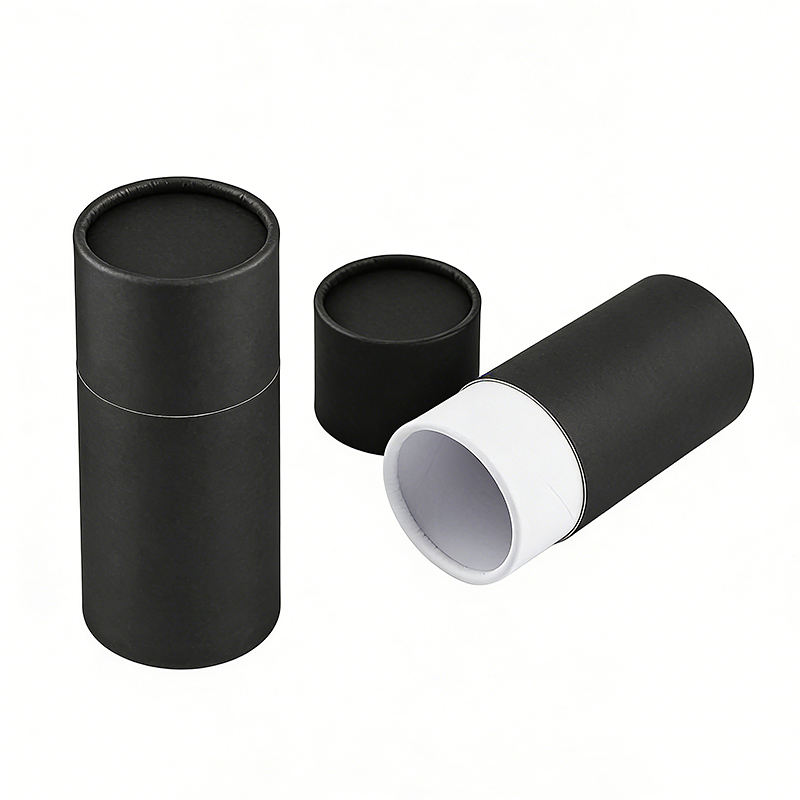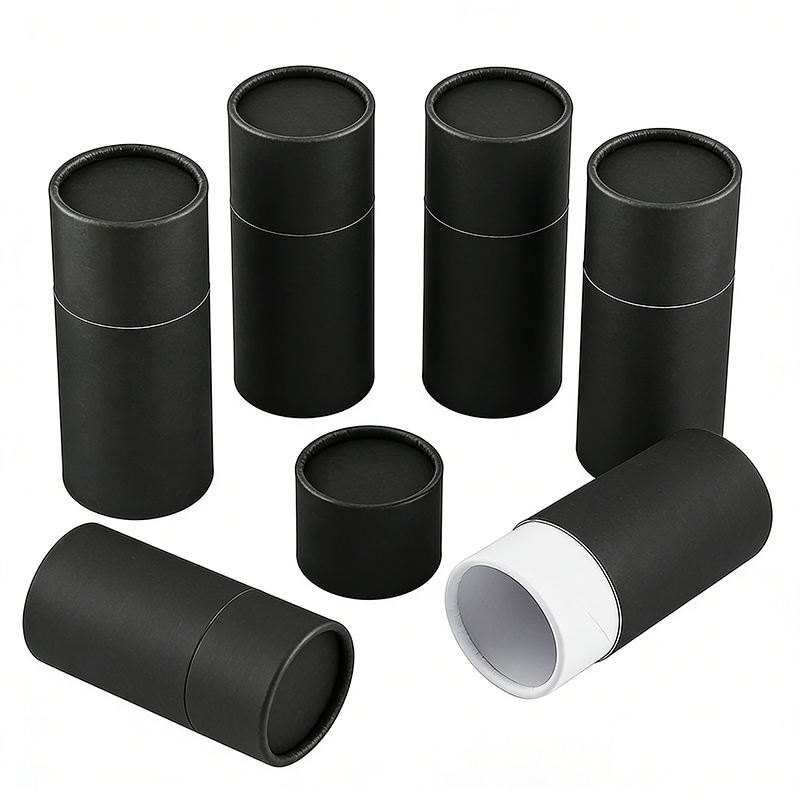 Scatole Cilindriche in Cartone Riciclabile Nero Personalizzate per Alimenti, Caramelle, Caffè, Tè, Confezioni in Tubo di Carta