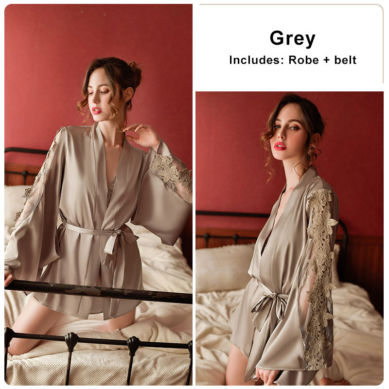 Custom Black Satin Silk Sleepwear Lace Trim Summer Romantic Nightgown