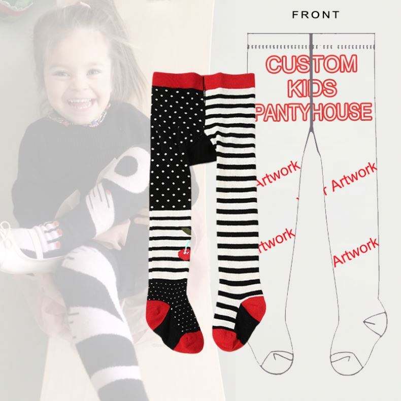 Custom Black White Stripe Kids Pantyhose Cherry Pattern Fruits Children Daily Elastic Plus Size Lovely Oem Tights