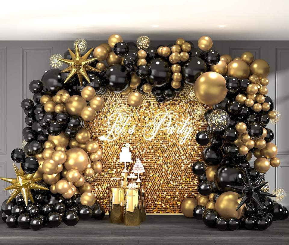 Custom Black and Gold Balloons Arch Garland Kit 5 10 12 18 Inch Black White and Metallic Gold Balloons Confetti Balloons