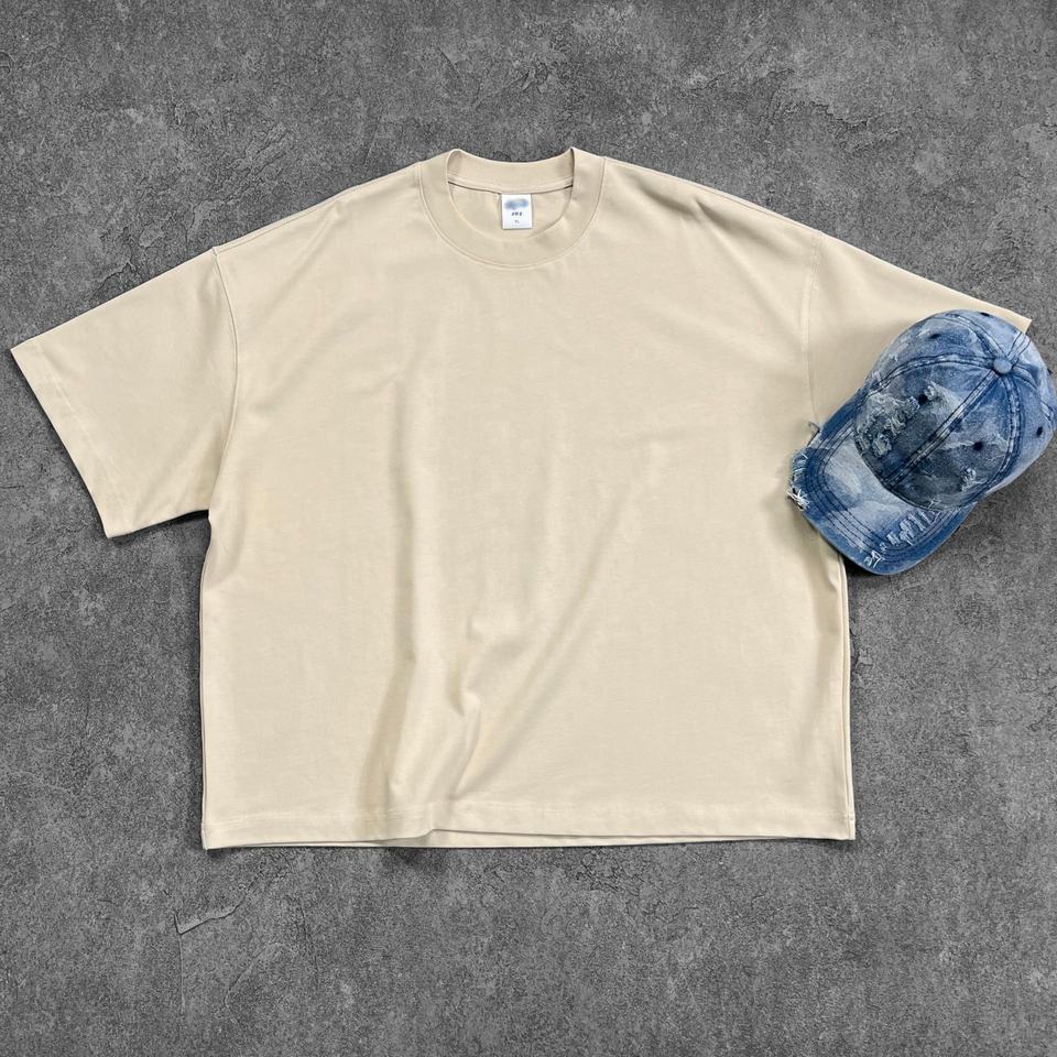 T-shirt personalizzata di lusso in cotone pesante, oversize, da uomo, con stampa logo personalizzata, modello cropped e squadrato