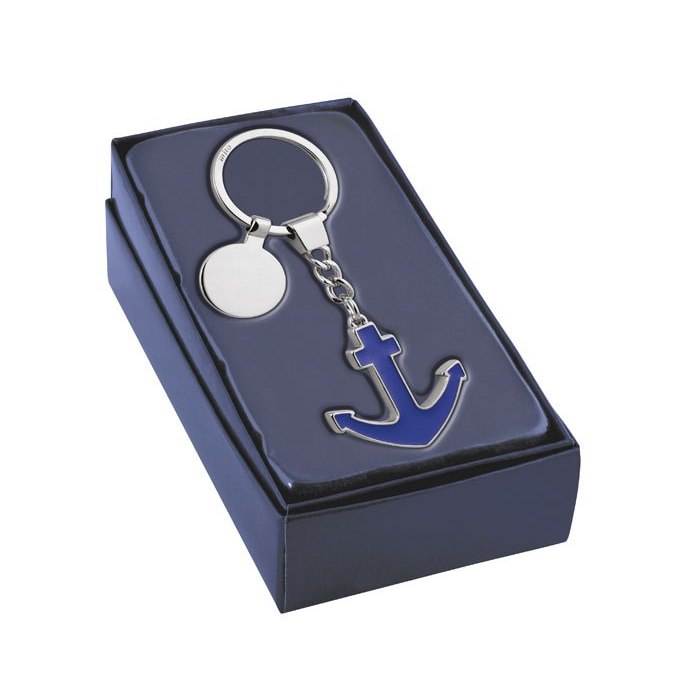 Portachiavi Personalizzato con Ancora Blu in Metallo e Moneta, per Aziende, con Logo Personalizzato