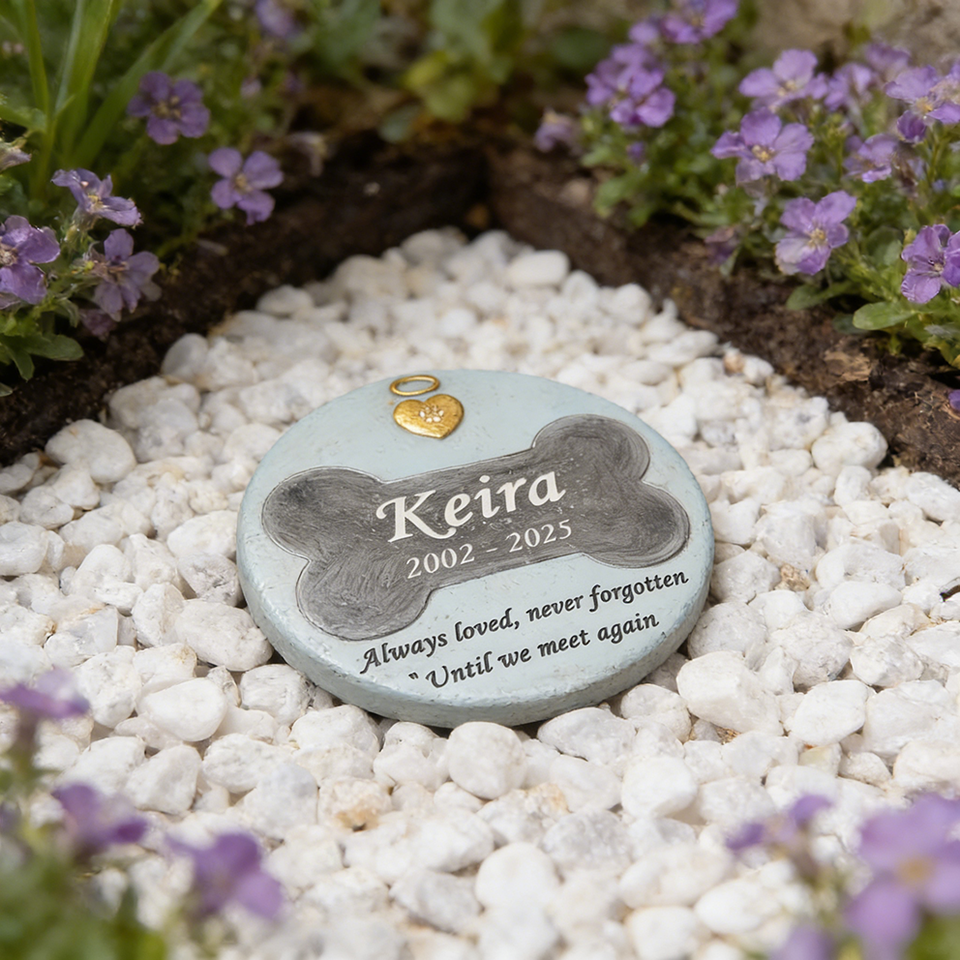 Targa Commemorativa per Animali Domestici a Forma di Osso Personalizzata, Ricordo in Resina Azzurra con Design Osseo Nero, Regalo Artigianale di Condoglianze per Amanti degli Animali