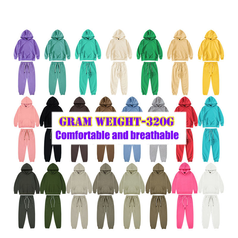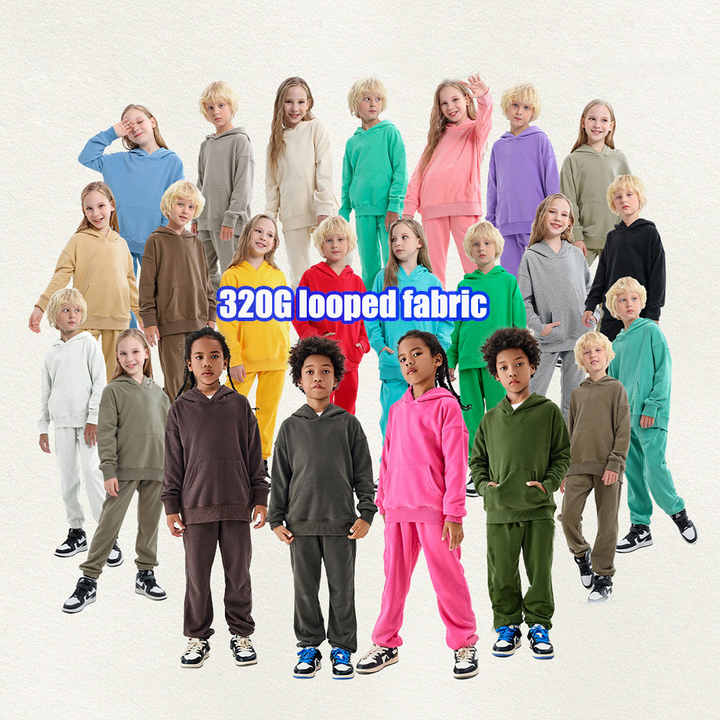 Product Name:2 pcs solid 320G looped fabric autumn winter hoodies set boys